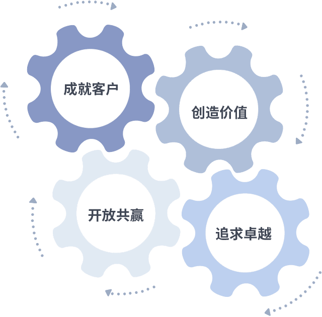 成就客户是一切决策的出发点,,,,创造价值是衡量所有工作的标准,,,追求卓越是美彩国际做事做人的态度,,,,开放共赢是美彩国际的格局也是最终的结果。。。。价值观的齿轮环环相扣,,推动着组织里的每个人不断向前。。